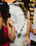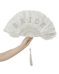Abanico con letras de perla bride Diametro con abanico extendido: 34 cm y 22 cm de altoLetras incluyen adhesivo para pegarlas al recibir producto Tambien se recomienda pegar letras con siliconaImagenes referenciales: No todos incluyen cordel que cuelga