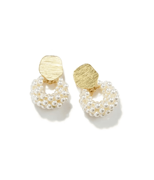 Aros tipo colganteDiseño: flor con brillito Color: Blanco con dorado