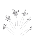 Diseño: Flores, Pétalos, perlasColor: Blanco/plateadoIncluye: 6 horquillas